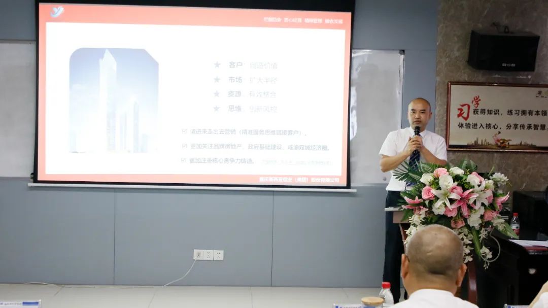 針對(duì)集團(tuán)公司下半年的市場開發(fā)工作:劉總從“為客戶創(chuàng)價(jià)值、擴(kuò)大市場半徑、有效整合資源、創(chuàng)新風(fēng)控思維、請(qǐng)進(jìn)來走出去融合營銷(精準(zhǔn)服務(wù)思維去鏈接客戶)、成渝雙城經(jīng)濟(jì)圈、更加注重核心競爭力鑄造”等方面進(jìn)行了深度闡述,為市場人員如何在激烈的市場競爭中搶抓訂單指明了方向;關(guān)于品牌(文化)經(jīng)營,劉總指出:“一年企業(yè)靠運(yùn)氣,十年企業(yè)靠經(jīng)營,百年企業(yè)靠文化”!要求全體新西亞家人認(rèn)真踐行集團(tuán)公司經(jīng)過12年精心培育、打造、根植于新西亞熱土的企業(yè)文化,使新西亞企業(yè)文化真正成為支撐企業(yè)高質(zhì)量發(fā)展,鍛造員工隊(duì)伍、激勵(lì)員工成長的重要法寶。