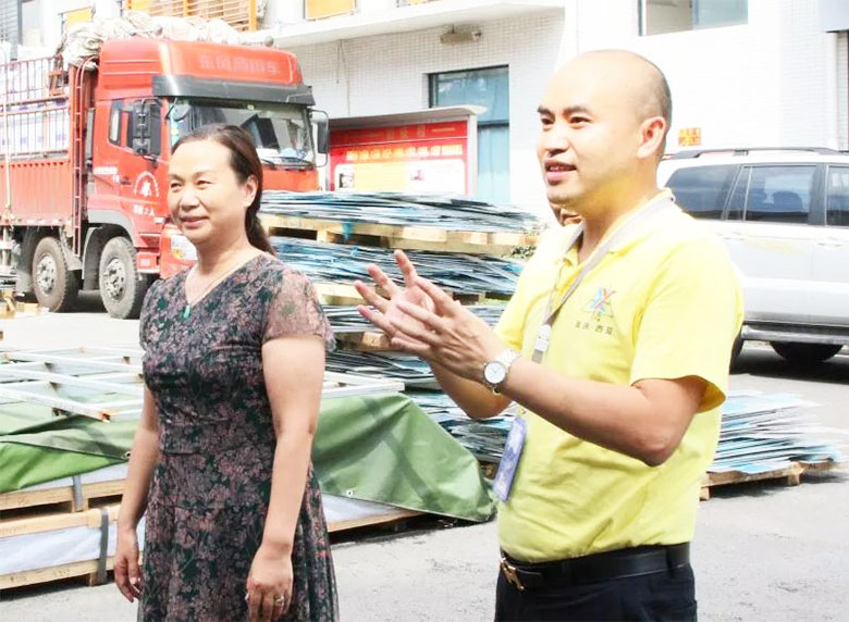 下午3點30分,區(qū)總工會羅主席一行來到鈑金車間生產(chǎn)場地,將西瓜、白糖、綠豆、礦泉水等防暑降溫慰問物品送到一線員工手中,羅主席親自將物品送到員工手中,對戰(zhàn)高溫、斗酷暑的一線員工表示了親切的慰問,并叮囑員工在完成好生產(chǎn)任務(wù)的同時,一定要保重身體。公司董事長劉斌、副總經(jīng)理兼工會主席傅明華對江津區(qū)總工會及園區(qū)工會冒著高溫酷暑親臨現(xiàn)場慰問員工表示衷心的感謝。劉斌董事長表示:羅主席親自將這些慰問物資送到公司,充分體現(xiàn)了黨和政府對西亞公司的關(guān)心,體現(xiàn)了區(qū)總工會領(lǐng)導(dǎo)對西亞公司的厚愛,我們一定不辜負(fù)上級領(lǐng)導(dǎo)的關(guān)懷,努力做好各方面的工作,努力為員工謀福利,努力為社會做貢獻(xiàn)。