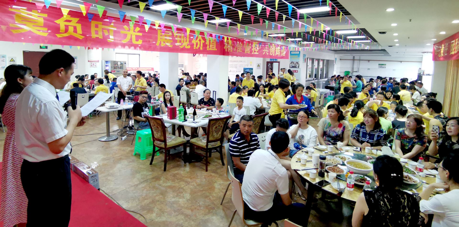 為隆重慶祝集團(tuán)公司上半年生產(chǎn)經(jīng)營(yíng)取得的優(yōu)異成績(jī),充分感謝全體新西亞家人在2019年上半年所作出的積極貢獻(xiàn),7月13日晚上,在公司食堂大廳舉辦了別開生面的答謝晚宴。公司全體股東、經(jīng)營(yíng)班子成員及全體新西亞家人245人參加了晚宴。為進(jìn)一步彰顯公司的“感恩文化”、“家文化”,公司特別邀請(qǐng)了10位員工家屬參加答謝晚宴。