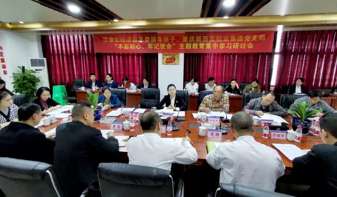 10月17日下午,江津區(qū)經(jīng)信委領導班子、新西亞鋁業(yè)集團黨支部“不忘初心、牢記使命”主題教育集中學習研討會在公司黨群活動中心舉行。區(qū)委直屬機關工委、區(qū)經(jīng)信委班子成員、中小企業(yè)服務中心黨支部全體黨員及新西亞鋁業(yè)集團黨支部部分黨員,共30名黨員同志參加了學習活動。研討會由區(qū)經(jīng)濟信息委黨組副書記、副主任謝治剛主持。