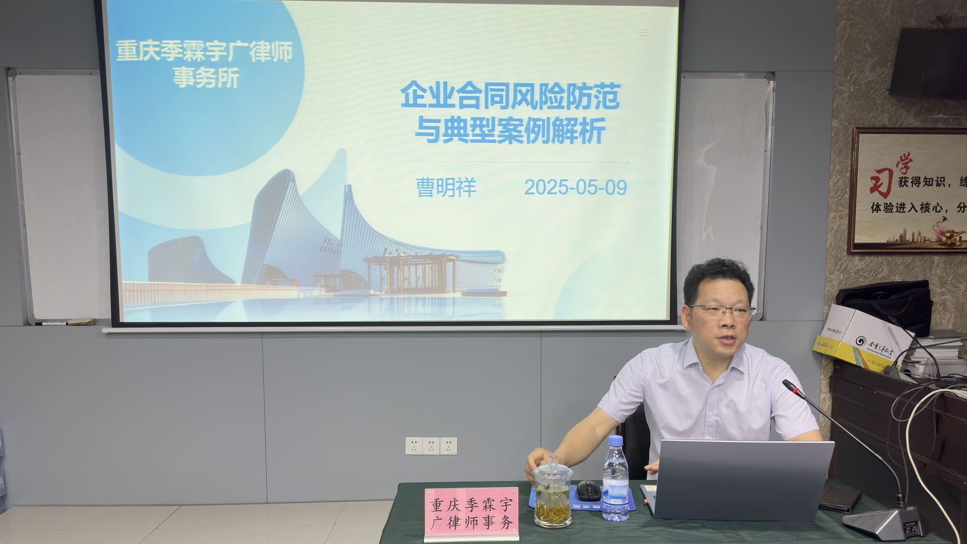 活動(dòng)當(dāng)日,重慶季霖宇廣律師事務(wù)所主任曹明祥以 “以法助企?護(hù)航發(fā)展”為主題,結(jié)合新西亞鋁業(yè)實(shí)際情況,開(kāi)展了《企業(yè)合同風(fēng)險(xiǎn)防范與典型案例解析》專題法治宣講。宣講活動(dòng)由公司總經(jīng)理助理周雄主持,公司經(jīng)營(yíng)負(fù)責(zé)(管理)負(fù)責(zé)人以及員工代表共計(jì) 40 余人參加,涵蓋生產(chǎn)、銷售、人力等關(guān)鍵部門(mén)負(fù)責(zé)人及一線員工代表。曹主任聚焦制造業(yè)特點(diǎn),剖析典型合同糾紛及勞動(dòng)用工案例,著重講解風(fēng)險(xiǎn)識(shí)別、防范策略及民法典關(guān)鍵條款,助力企業(yè)提升依法維權(quán)與風(fēng)險(xiǎn)防控能力。