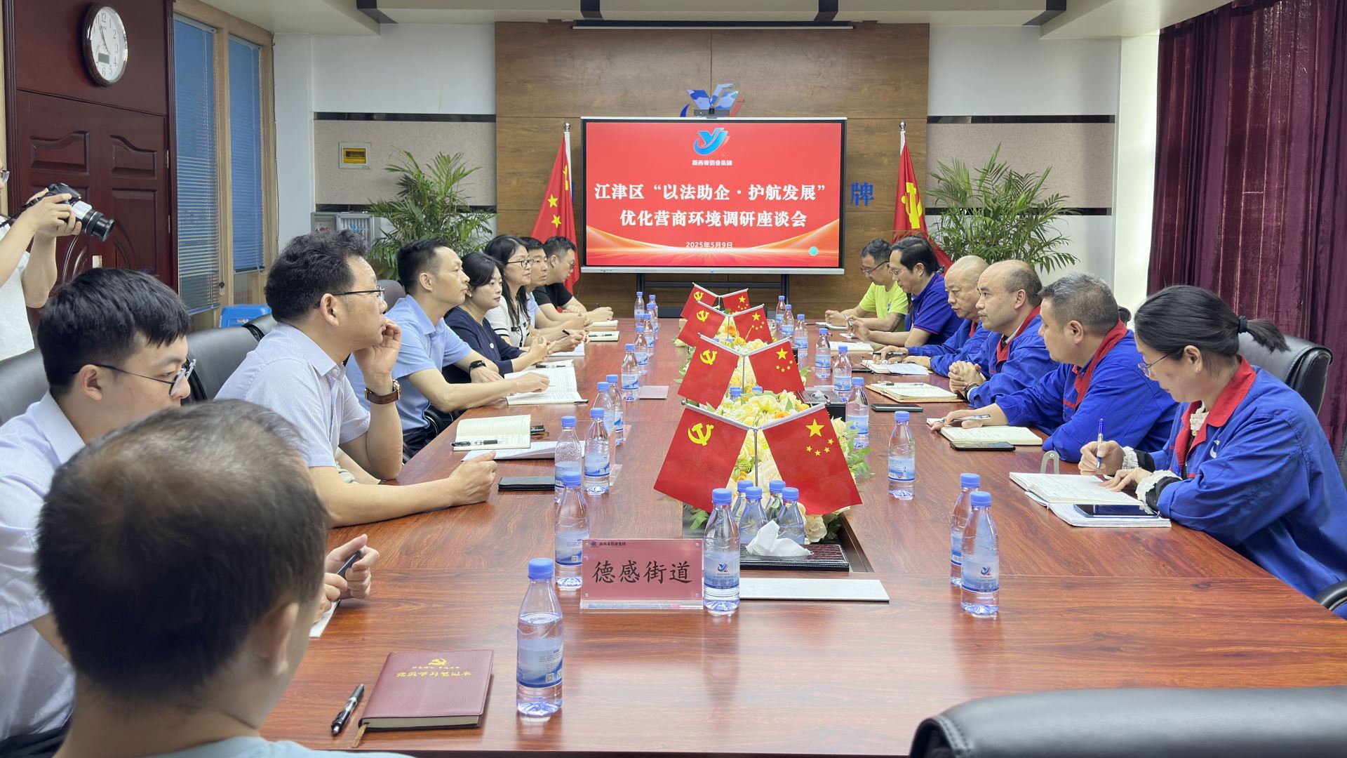 隨后,雙方在一樓多功能廳進(jìn)行了深入的座談交流。董事長(zhǎng)兼總經(jīng)理劉斌首先對(duì)江津區(qū)委政法委委員、區(qū)法學(xué)會(huì)常務(wù)副會(huì)長(zhǎng)陳祖平一行表示熱烈歡迎和誠(chéng)摯感謝,他表示調(diào)研團(tuán)隊(duì)的到來(lái)體現(xiàn)了各級(jí)黨委、政府對(duì)優(yōu)化營(yíng)商環(huán)境的重視以及對(duì)民營(yíng)企業(yè)健康發(fā)展的關(guān)心。各事業(yè)部負(fù)責(zé)人提出了公司在依法經(jīng)營(yíng)、知識(shí)產(chǎn)權(quán)保護(hù)、財(cái)務(wù)稅務(wù)、勞動(dòng)用工、合同管理等方面存在的問(wèn)題和困難,企業(yè)方面共提出涵蓋知識(shí)產(chǎn)權(quán)保護(hù)、稅務(wù)籌劃等 15 類問(wèn)題,涉及合同管理、勞動(dòng)用工等多領(lǐng)域。