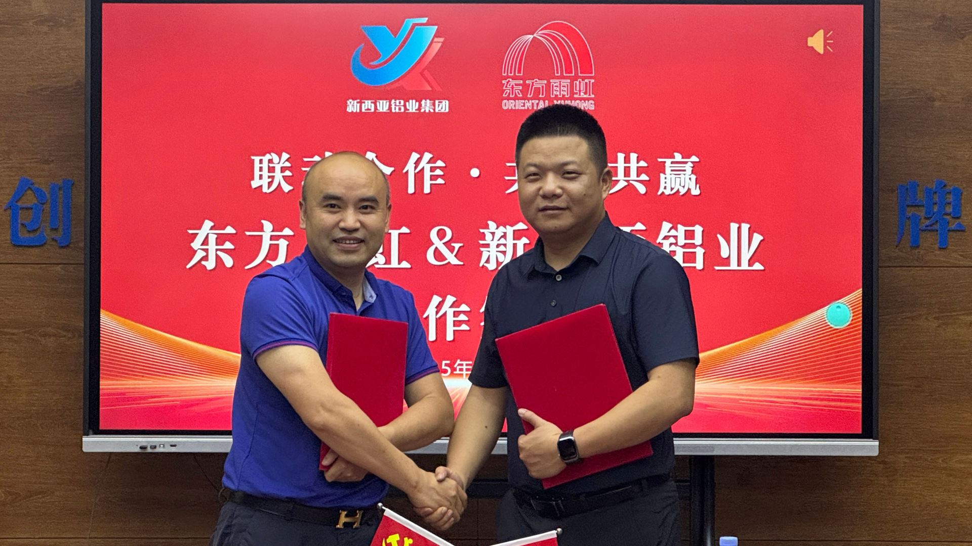 7月4日,重慶新西亞鋁業(yè)集團(tuán)與東方雨虹集團(tuán)在重慶新西亞隆重舉行戰(zhàn)略合作簽約儀式。新西亞董事長(zhǎng)兼總經(jīng)理劉斌與東方雨虹副總裁鐘聲等高層代表出席簽約,標(biāo)志著兩家行業(yè)領(lǐng)軍企業(yè)正式開(kāi)啟深度合作新篇章,‘聯(lián)動(dòng)合作·共享共贏’的理念邁出堅(jiān)實(shí)一步。