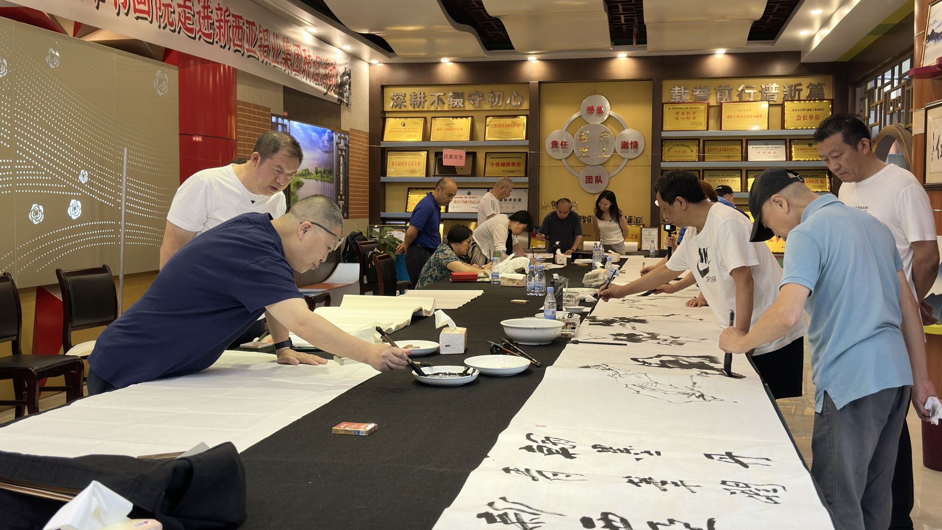 本次“書(shū)畫(huà)家走進(jìn)新西亞”活動(dòng),是新西亞鋁業(yè)集團(tuán)踐行“文化賦能品牌”戰(zhàn)略的里程碑式實(shí)踐。它不僅為企業(yè)家和員工們帶來(lái)了一場(chǎng)高品位的文化盛宴,豐富了大家的精神文化生活,更成功搭建了傳統(tǒng)文化與現(xiàn)代企業(yè)深度對(duì)話的橋梁,實(shí)現(xiàn)了中華優(yōu)秀書(shū)畫(huà)藝術(shù)與新西亞企業(yè)精神的血脈相融。正如劉斌總經(jīng)理所言,“藝術(shù)與企業(yè)同行,文化與發(fā)展共進(jìn)”,文化軟實(shí)力正成為驅(qū)動(dòng)新西亞高質(zhì)量發(fā)展的“硬核支撐”。