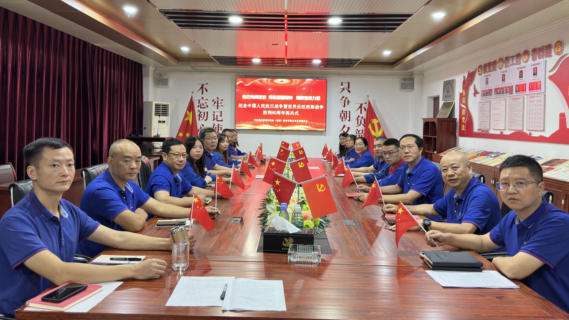 為紀念抗戰(zhàn)偉大勝利、弘揚抗戰(zhàn)偉大精神,進一步激發(fā)全體員工的愛國熱情與民族自豪感,集團公司黨支部組織全體黨員干部、入黨積極分子及干部群眾代表集中收看紀念大會及閱兵活動直播,共同見證這一意義非凡的時刻。黨支部書記劉斌與大家一同觀看直播,回顧歷史,感受祖國的輝煌與榮耀。