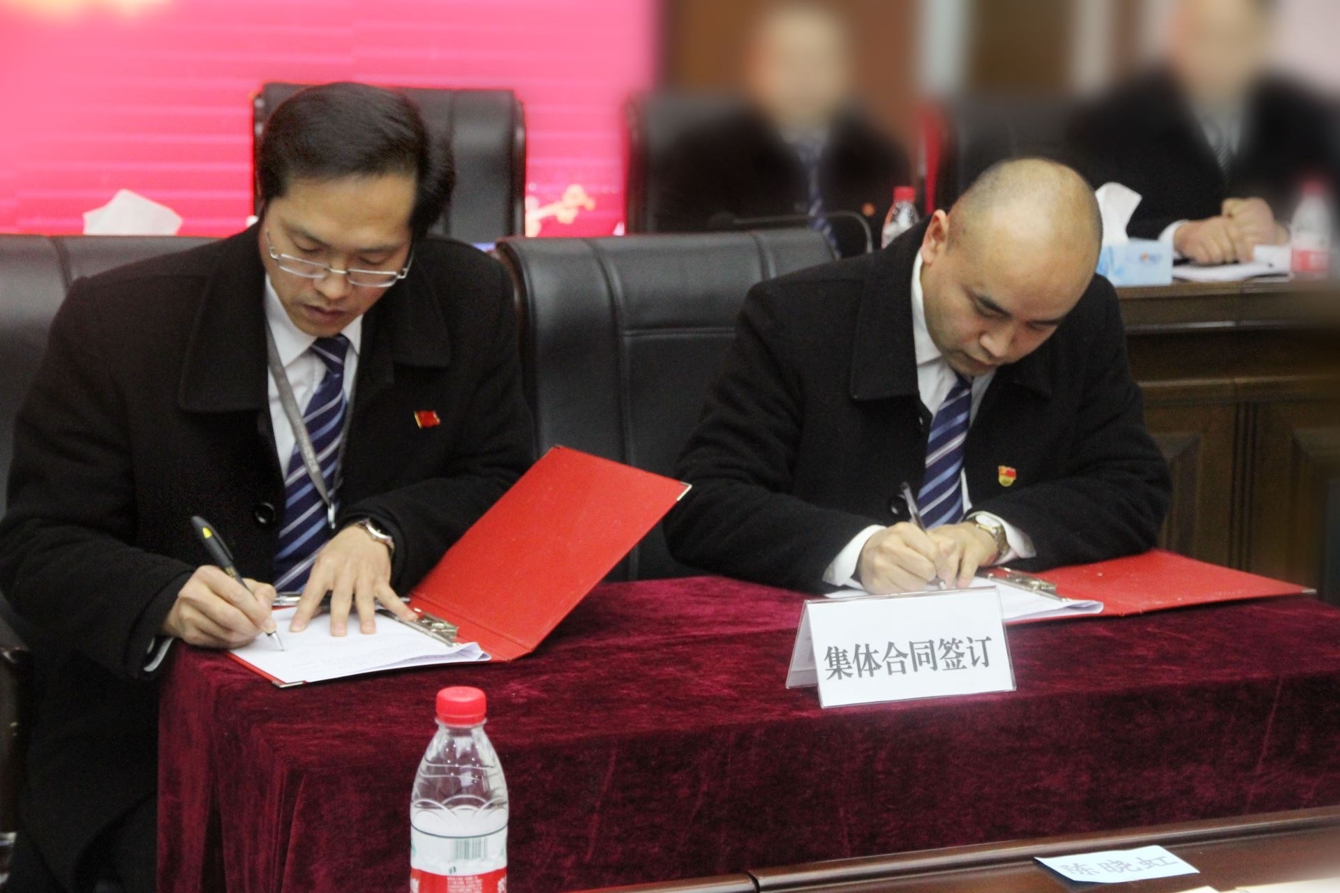 會上,董事長劉斌與工會主席傅明華簽訂了新西亞鋁業(yè)集團(tuán)2019年《集體合同》;公司傅總經(jīng)理傅明華宣讀了公司2019年干部任免決定;劉董事長親自將紅彤彤的“任命書”頒發(fā)給每一個(gè)公司經(jīng)營班子成員和部門負(fù)責(zé)人手中,受聘干部隨即進(jìn)行了莊嚴(yán)的集體宣誓。