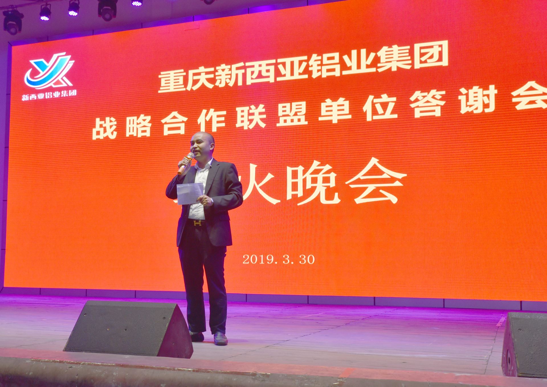 為進(jìn)一步增強(qiáng)與新老客戶的合作交流,提升公司與新老客戶的戰(zhàn)略合作聯(lián)盟內(nèi)涵,2019年3月30日,重慶新西亞鋁業(yè)(集團(tuán))股份有限公司在“AAA”級(jí)風(fēng)景旅游區(qū)重慶市石筍山召開了2019年“戰(zhàn)略合作聯(lián)盟單位答謝會(huì)”。中國鋁業(yè)協(xié)會(huì)、重慶市新材料協(xié)會(huì)、重慶建筑裝飾協(xié)會(huì),重慶家居協(xié)會(huì)和來自全國各地的部分戰(zhàn)略合作聯(lián)盟單位領(lǐng)導(dǎo)以及集團(tuán)公司經(jīng)營班子、市場開發(fā)部、客戶服務(wù)部部份員工共計(jì)100多人參加了答謝會(huì)。公司副總經(jīng)理李小紅主持了答謝會(huì)。