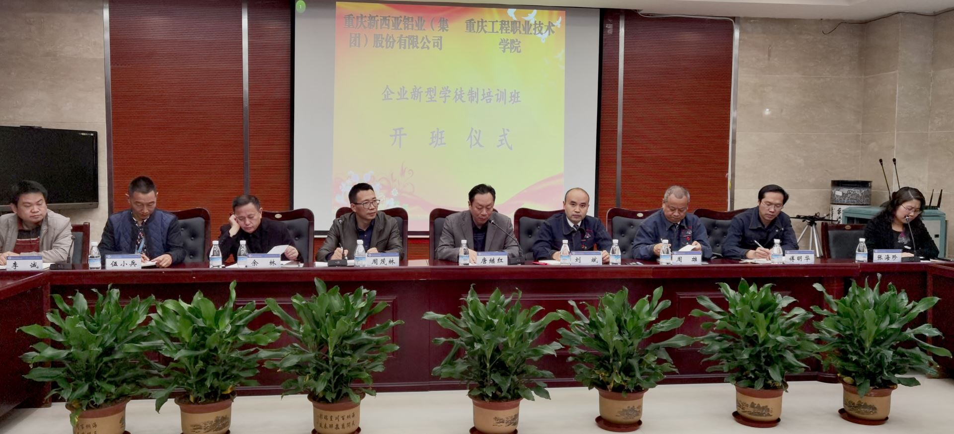 會上,重慶工程職業(yè)技術(shù)學(xué)院副校長唐繼紅和重慶新西亞鋁業(yè)集團總經(jīng)理劉斌為企業(yè)新型學(xué)徒制培訓(xùn)帶徒導(dǎo)師代表頒發(fā)了聘書。大數(shù)據(jù)與物聯(lián)網(wǎng)學(xué)院院長伍小兵、智能制造與交通學(xué)院副院長李誠分別介紹了學(xué)院發(fā)展情況,并針對“計算機及外部設(shè)備裝配調(diào)試員”和“沖壓工”兩個工種的培訓(xùn)內(nèi)容及有關(guān)安排作了說明。