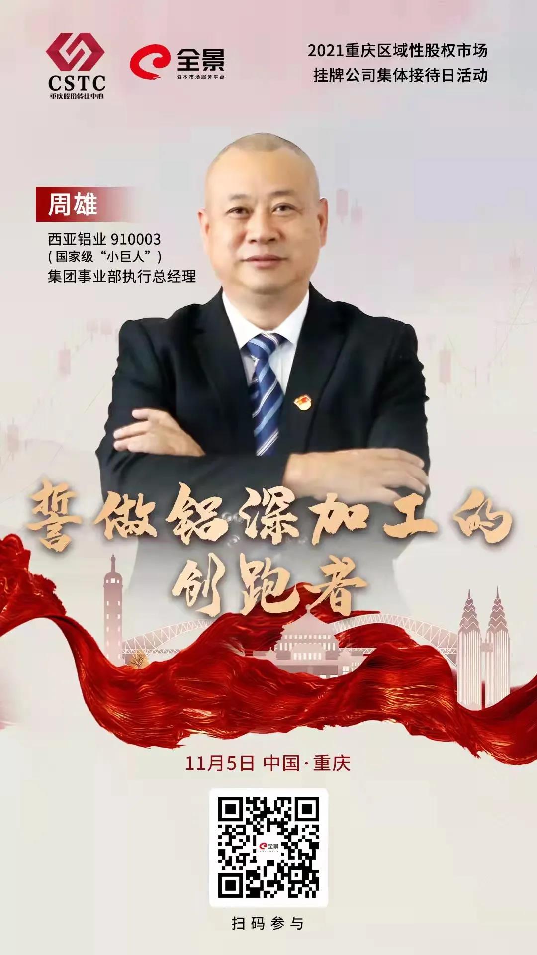 新西亞鋁業(yè)集團(tuán)作為國(guó)家級(jí)“小巨人”和重慶市級(jí)“專精特新”企業(yè),始終把科技創(chuàng)新和經(jīng)營(yíng)模式創(chuàng)新放在企業(yè)發(fā)展的首位,把借力資本市場(chǎng)發(fā)展作為公司的重要戰(zhàn)略。公司將不斷提高發(fā)展質(zhì)量和效益,更好地履行“為客戶創(chuàng)價(jià)值,為員工謀福利,為社會(huì)作貢獻(xiàn)”的核心價(jià)值觀,真正建成具有一流核心競(jìng)爭(zhēng)力和強(qiáng)烈社會(huì)責(zé)任感的優(yōu)秀企業(yè),為成渝雙城際經(jīng)濟(jì)圈發(fā)展作出新的更大貢獻(xiàn)!