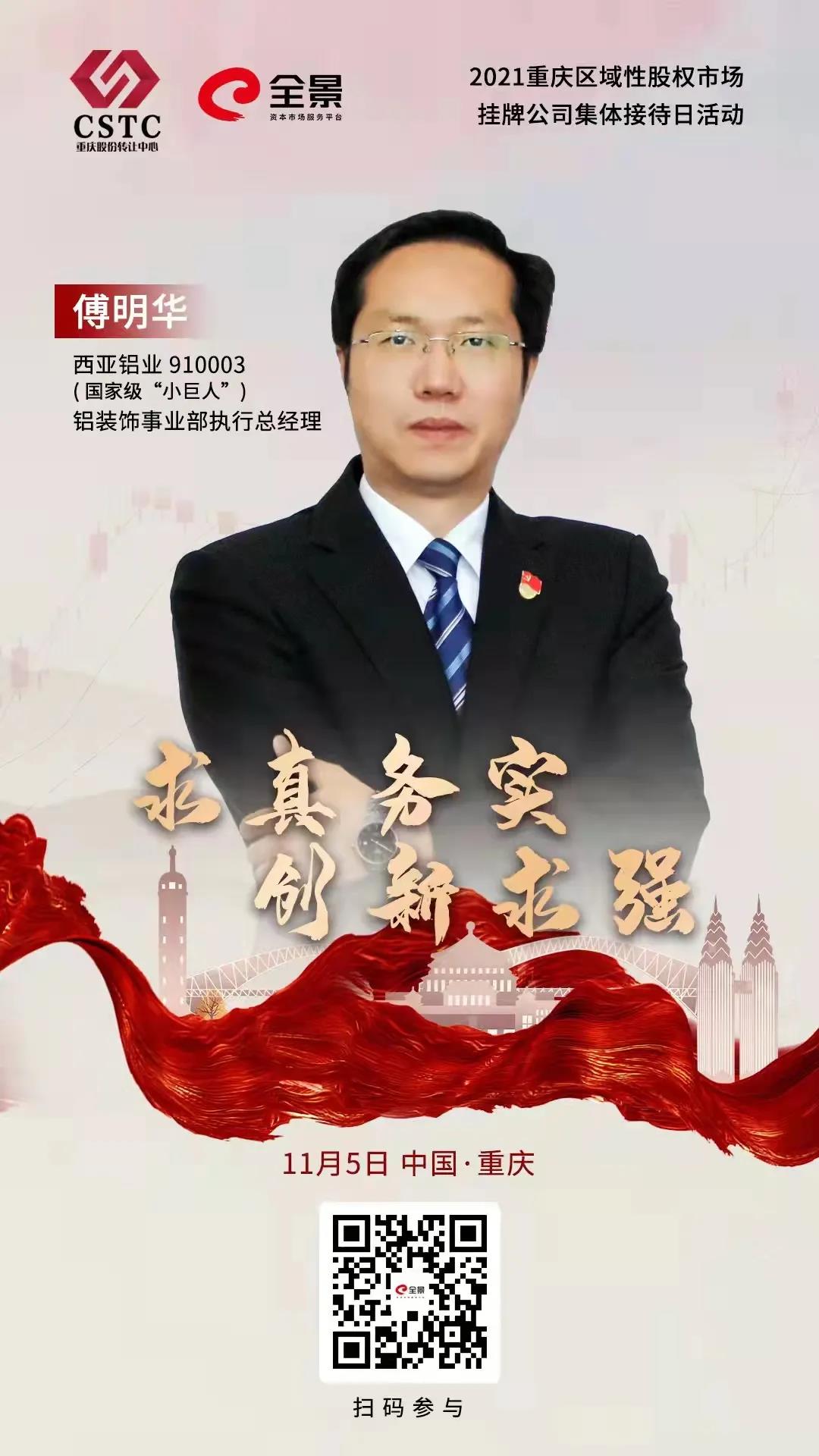 重慶新西亞鋁業(yè)集團(tuán)作為掛牌企業(yè)(股權(quán)代碼910003),高度重視此次活動(dòng),集團(tuán)公司董事長(zhǎng)兼總經(jīng)理劉斌,集團(tuán)事業(yè)部執(zhí)行總經(jīng)理周雄,鋁裝飾事業(yè)部執(zhí)行總經(jīng)理傅明華全程參與。