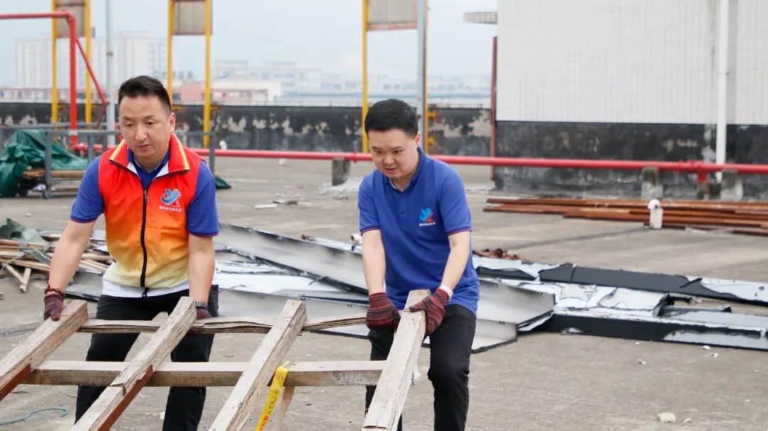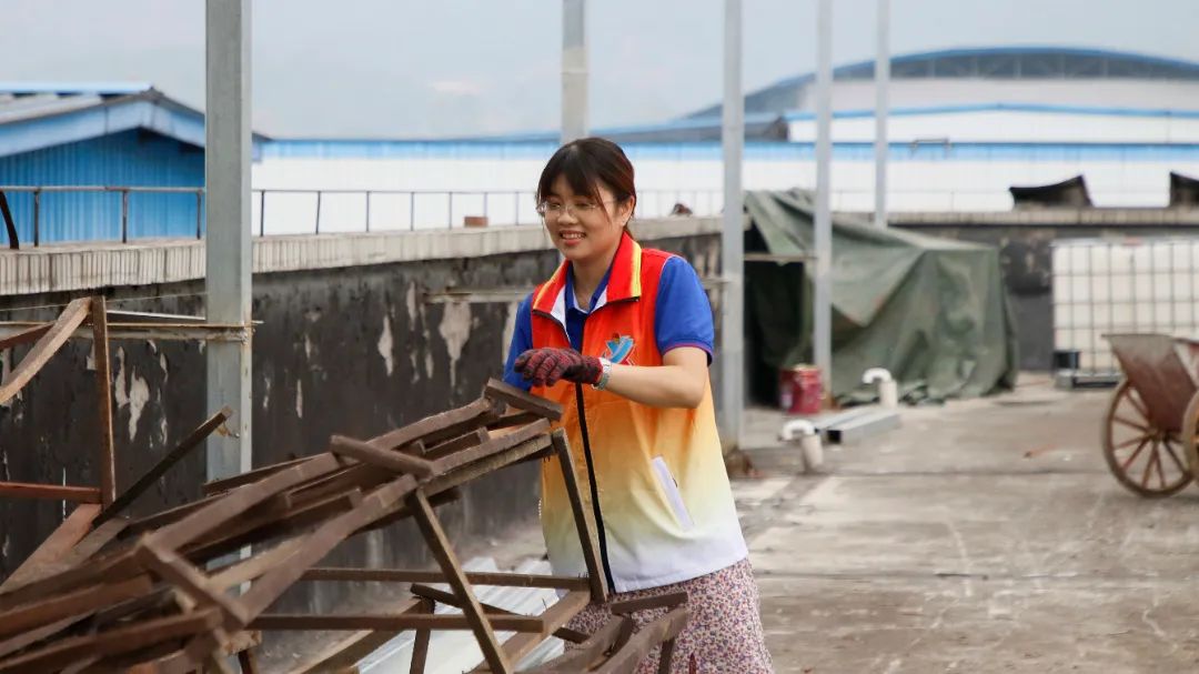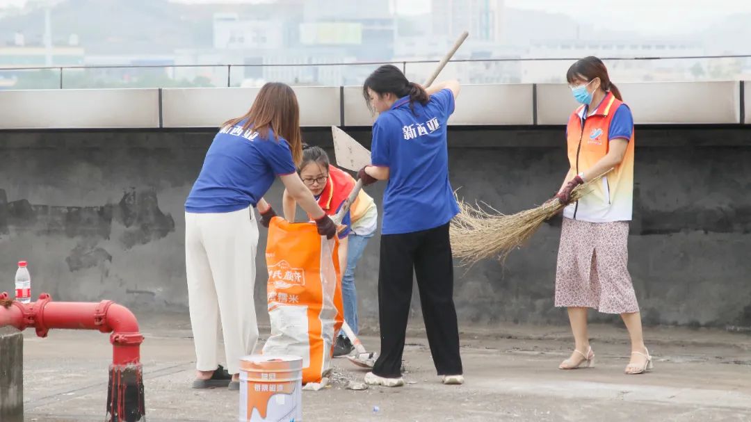 勞動(dòng)中,大家忘記了自己的年齡、性別,個(gè)個(gè)不甘落后,搶著去干重活、臟活、累活……勞動(dòng)的汗水浸濕了大家身上的衣裳,同時(shí)也換來(lái)了“收獲的喜悅”。經(jīng)過(guò)近兩個(gè)半小時(shí)的辛勤勞動(dòng),讓原來(lái)雜亂的廠房頂樓煥然一新。