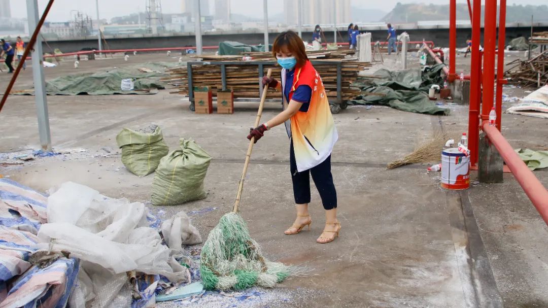 此次義務(wù)勞動(dòng)內(nèi)容是清理生產(chǎn)廠房樓頂施工區(qū)散亂堆放的鋼管、鋼架、管件、木條、石子等施工物料和垃圾,分類整齊堆放可用的物料,清運(yùn)不可用的廢棄物料和垃圾,改善廠區(qū)風(fēng)貌。