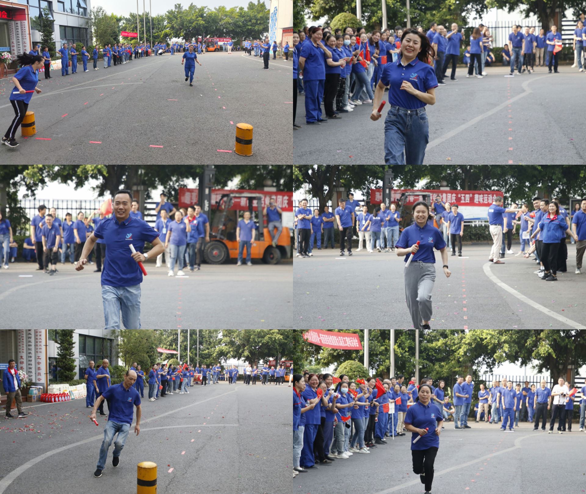 本次運動會趣味與運動兼顧,競爭與團結(jié)共存,共設(shè)置“拔河比賽”“迎面接力賽”“旱地龍舟”“東南西北跑”四個項目,六個參賽隊伍依次展開角逐。