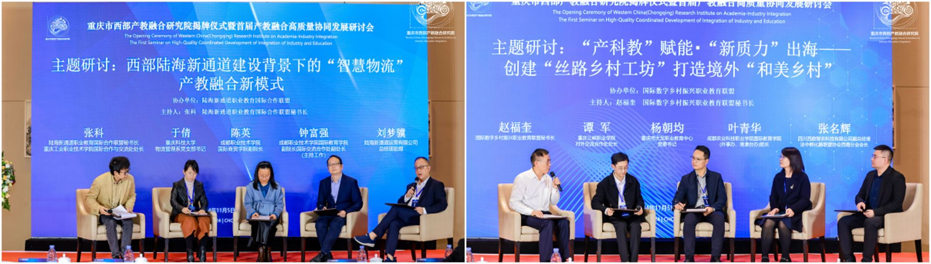 最后,研究院聚焦“強(qiáng)化校企合作、推進(jìn)產(chǎn)教協(xié)同育人”,圍繞“智慧物流”“鄉(xiāng)村振興”“專(zhuān)精特新”等主題,攜手陸海新通道職業(yè)教育國(guó)際合作聯(lián)盟、國(guó)際數(shù)字鄉(xiāng)村振興職業(yè)教育聯(lián)盟、重慶市賽斯企業(yè)管理有限公司聯(lián)合舉辦了三場(chǎng)主題對(duì)話,為智慧物流產(chǎn)教融合新模式發(fā)展、“校企組團(tuán)”出海服務(wù)“絲路數(shù)字鄉(xiāng)村工坊”,協(xié)同育人推動(dòng)金專(zhuān)業(yè)建設(shè),助力人才興國(guó)建設(shè)。