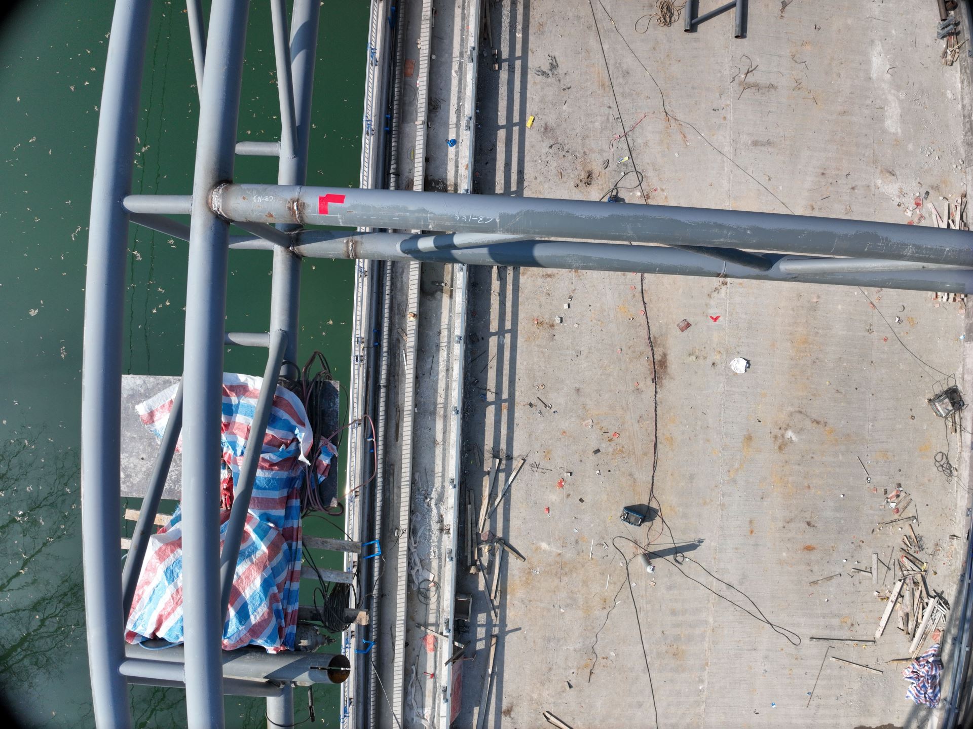 圖1,還在吊裝施工中的現(xiàn)場橋體鋼結(jié)構(gòu)