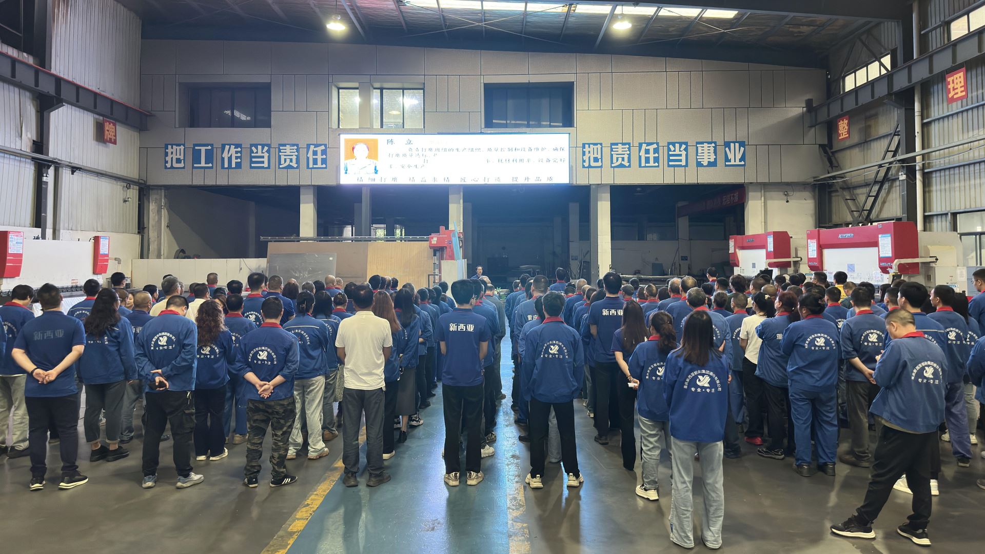 6月2日,雨幕輕籠,卻遮不住新西亞人奮進(jìn)的腳步。8點(diǎn)整,新西亞鈑金生產(chǎn)車間內(nèi),六月員工大會(huì)如期舉行,鋁科技事業(yè)部負(fù)責(zé)人傅明華主持會(huì)議。