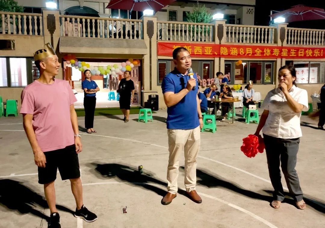 生日活動現場,新西亞鋁業(yè)集團總經理劉斌、隱涵食品總經理劉安梨兩位大家長分別對過生日的家人送上美好的祝福及良好的祝愿!兩位劉總表示:通過兩家企業(yè)融合發(fā)展、聯盟的勢頭,結合集體生日活動會以及其他聯誼活動的開展,表達公司對員工的關懷,拉近彼此間的距離,增進友誼,促進團結發(fā)展,給員工們帶來家的溫馨和感受。也為了兩家企業(yè)的文化共建共享、品牌嫁接融合、資源共享方面拉近雙方合作的高度與深度。