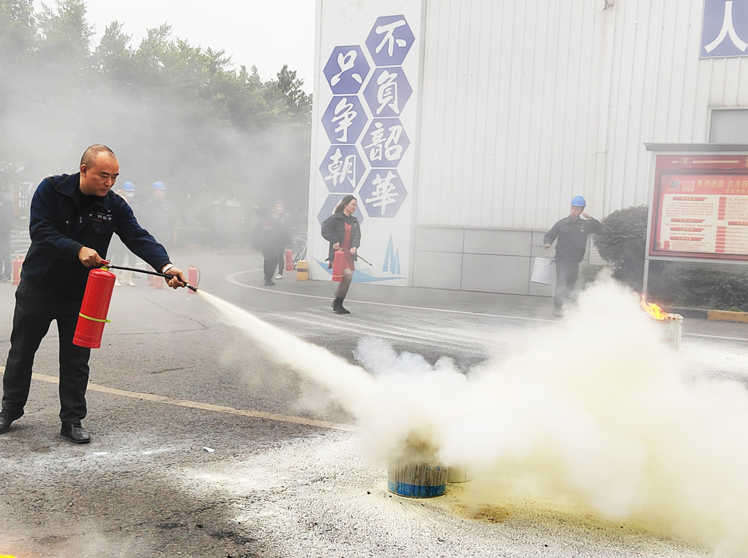 為鞏固培訓所學知識,培訓結束后在公司中庭廣場組織舉行了消防滅火演練。