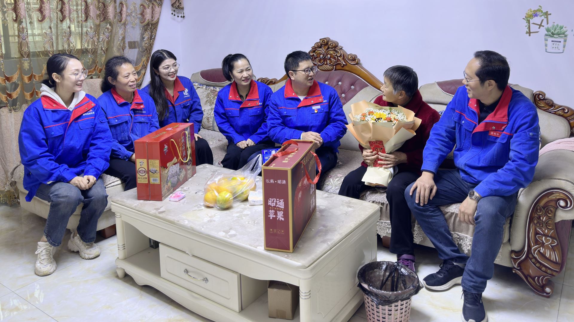 黨支部書記曹健、工會(huì)主席傅明華、團(tuán)支部書記張麗芳及公司員工代表組成慰問組,開展座談并登門走訪,將滿載敬意的慰問品與真摯關(guān)懷送到員工父母手中。此次“組團(tuán)送溫暖”,既是對“尊賢頌德、感恩奉獻(xiàn)”企業(yè)文化的生動(dòng)踐行,也是對集團(tuán)發(fā)展歷程中孝道與感恩精神的溫情回溯。